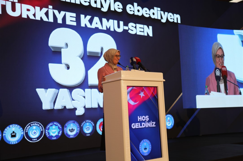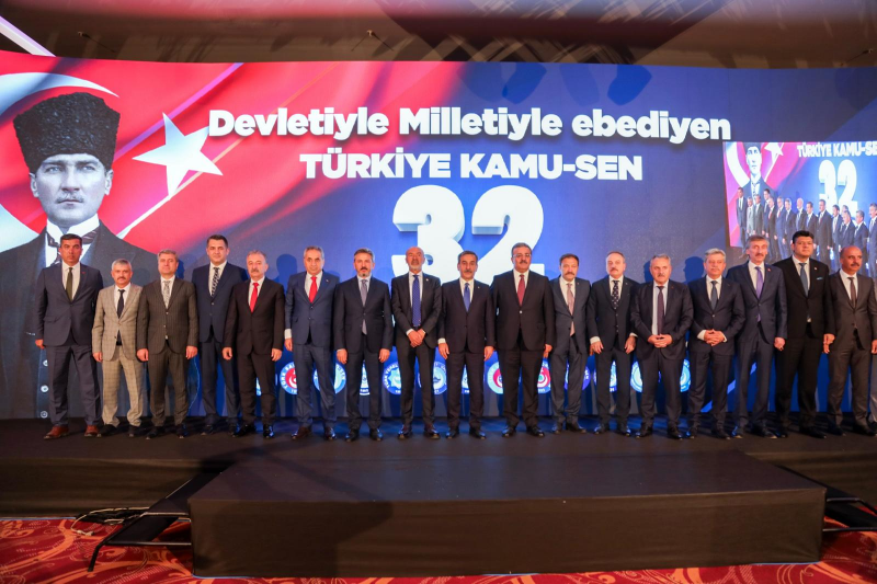 Çalışma ve Sosyal Güvenlik Bakan Yardımcısı Ahmet Aydın ise, Türkiye Kamu-Sen’in memurlar için, millet için neler ifade ettiğini iyi bildiklerini, Türkiye Kamu-Sen’in 32 yıldır verdiği mücadelenin ortada olduğunu belirterek her zaman istişare ve diyalog halinde olarak kamu görevlilerinin sorunlarının çözüm noktasında üzerimize düşeni yapmaya devam edeceklerini ifade etti, kuruluş yıldönümünü kutladı.