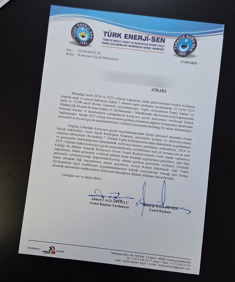 Sendika olarak Toplu Sözleşme döneminin sonuna gelindiğini belirterek çalışanlara henüz Koruyucu Giyim vermemiş olan Kurumların Koruyucu Giyim Komisyonlarını çalıştırarak bu hak kaybının önüne geçilmesini yazılı olarak talep ettik.